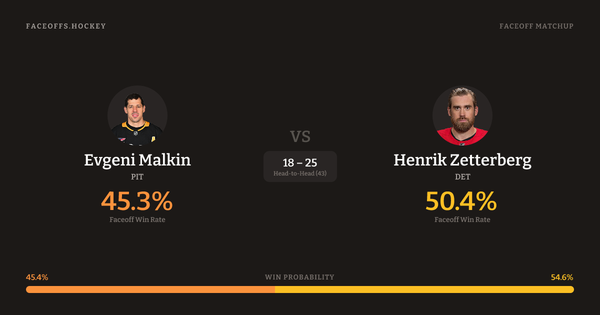 Evgeni Malkin vs Henrik Zetterberg — Faceoff Head-to-Head