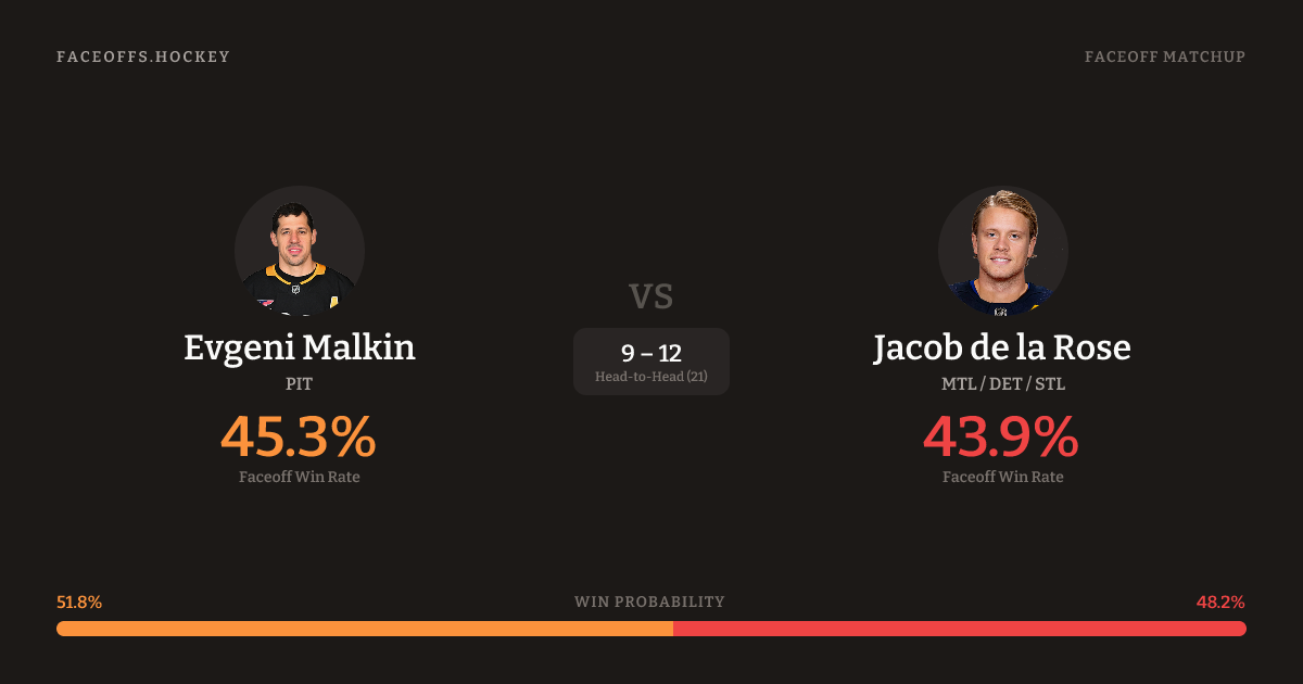 Evgeni Malkin vs Jacob de la Rose — Faceoff Head-to-Head