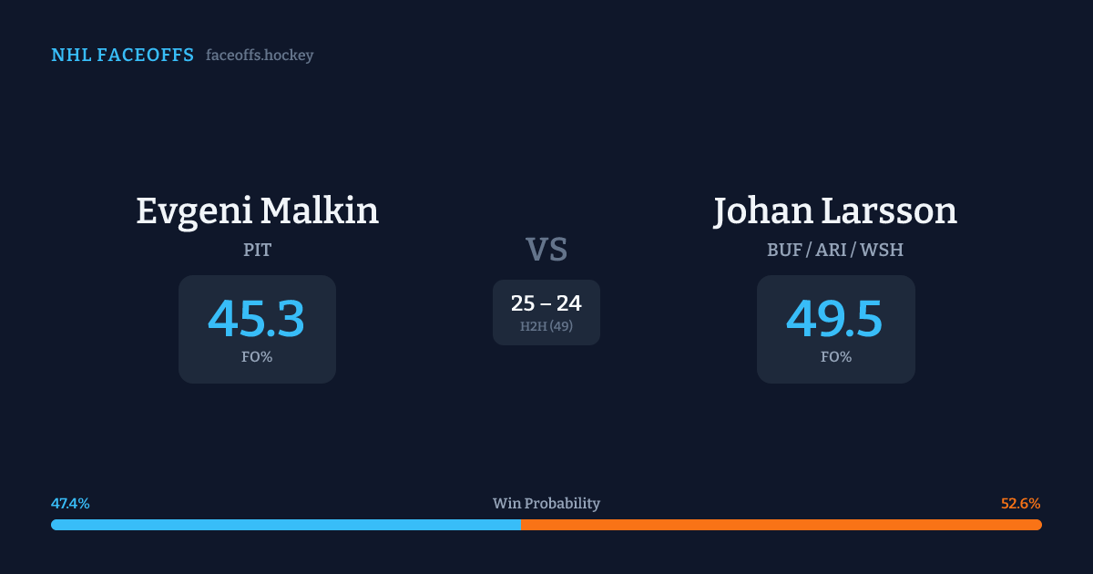 Evgeni Malkin vs Johan Larsson — Faceoff Head-to-Head