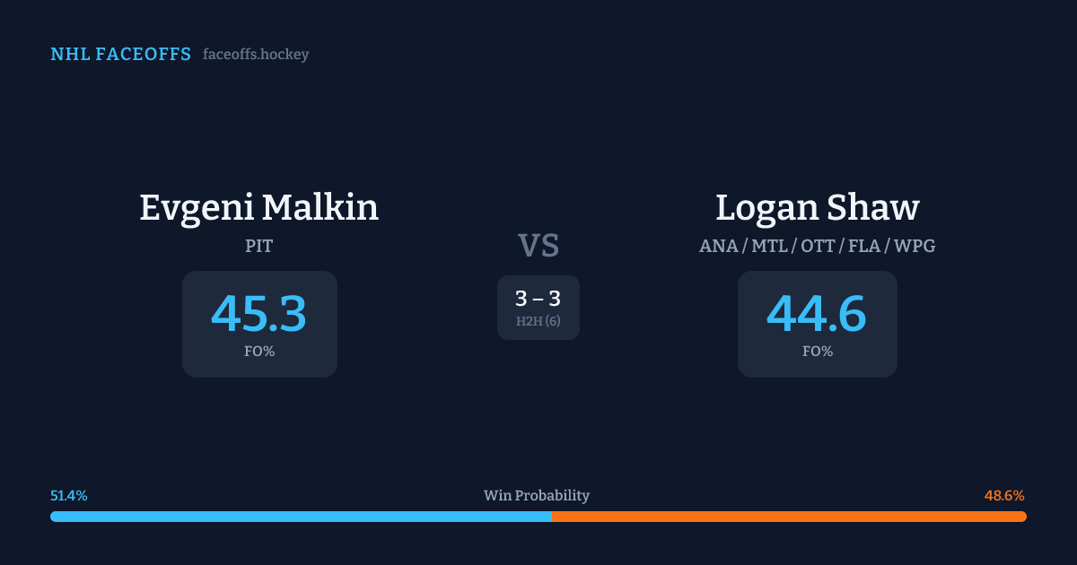 Evgeni Malkin vs Logan Shaw — Faceoff Head-to-Head