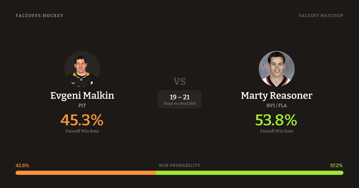 Evgeni Malkin vs Marty Reasoner — Faceoff Head-to-Head