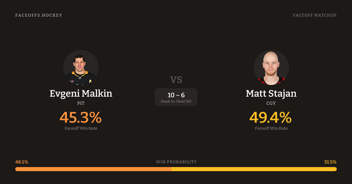 Evgeni Malkin vs Matt Stajan — Faceoff Head-to-Head