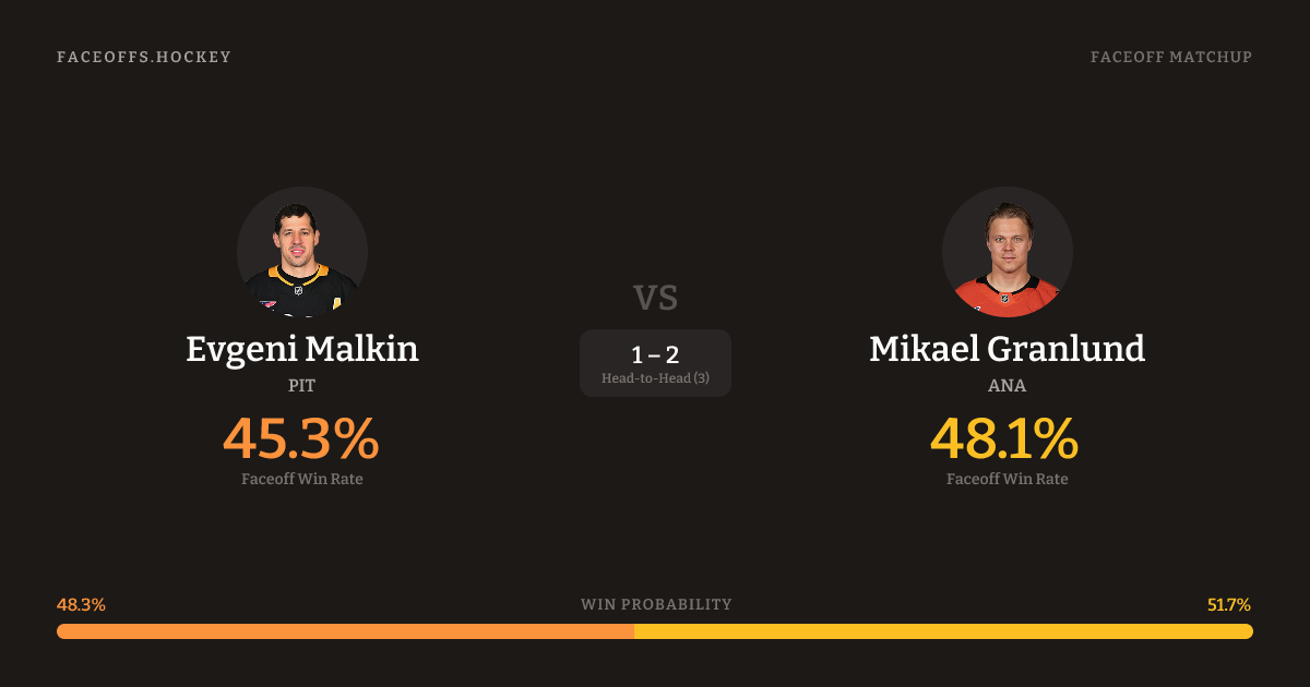 Evgeni Malkin vs Mikael Granlund — Faceoff Head-to-Head