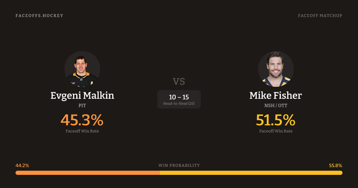 Evgeni Malkin vs Mike Fisher — Faceoff Head-to-Head
