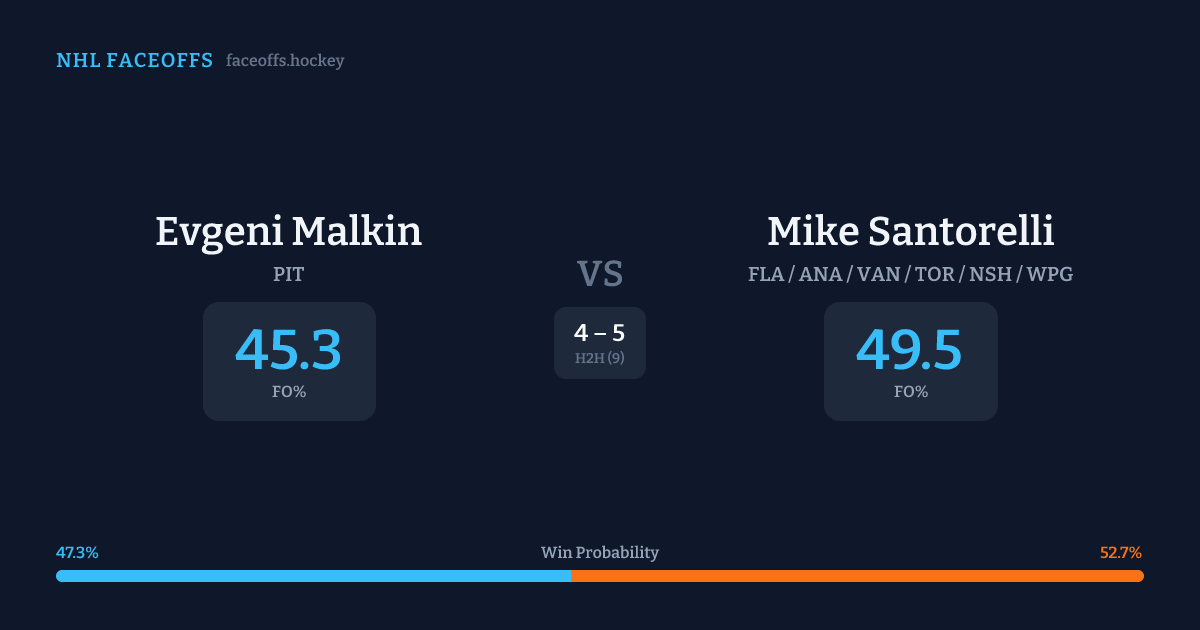 Evgeni Malkin vs Mike Santorelli — Faceoff Head-to-Head
