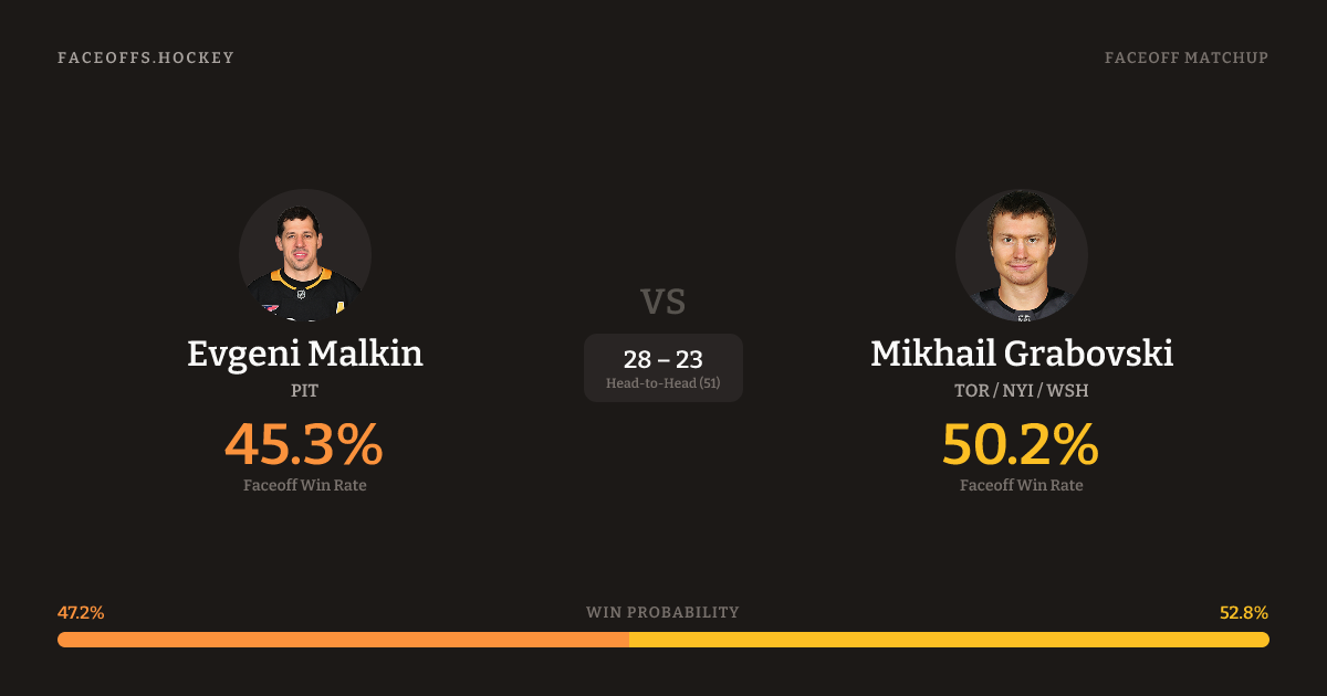Evgeni Malkin vs Mikhail Grabovski — Faceoff Head-to-Head