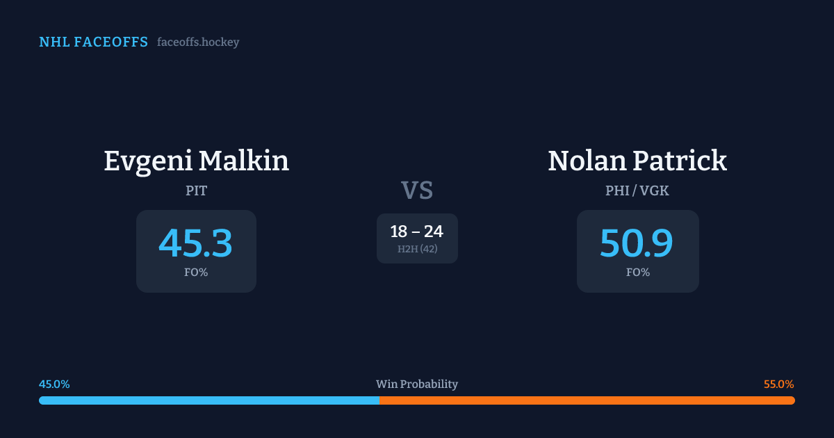 Evgeni Malkin vs Nolan Patrick — Faceoff Head-to-Head