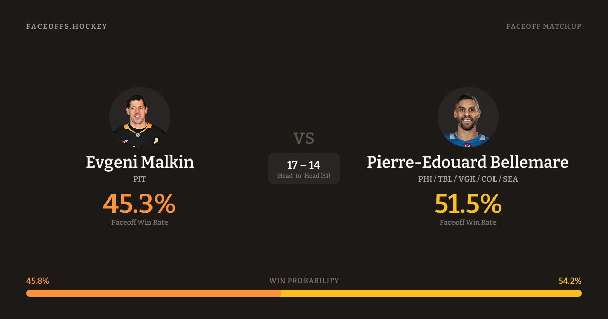 Evgeni Malkin vs Pierre-Edouard Bellemare — Faceoff Head-to-Head