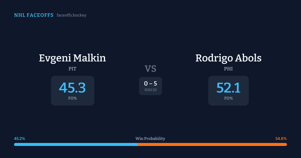 Evgeni Malkin vs Rodrigo Abols — Faceoff Head-to-Head