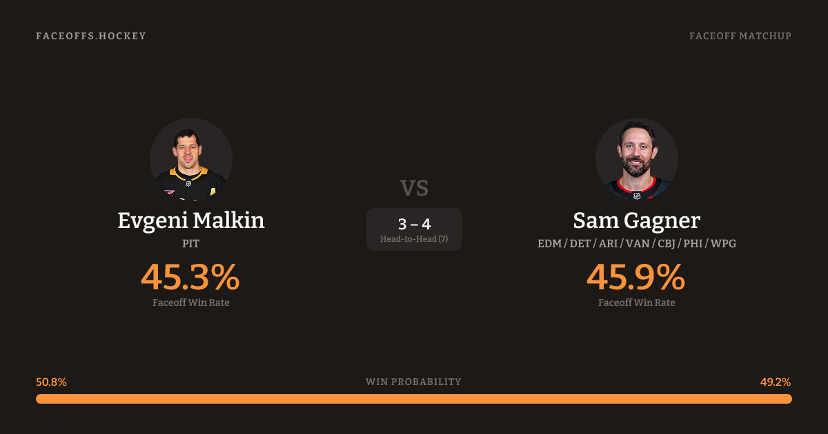 Evgeni Malkin vs Sam Gagner — Faceoff Head-to-Head
