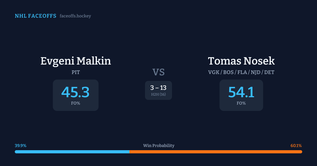 Evgeni Malkin vs Tomas Nosek — Faceoff Head-to-Head