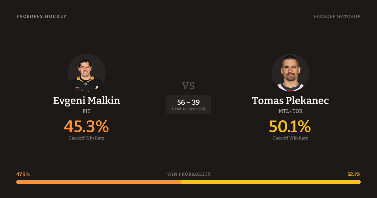 Evgeni Malkin vs Tomas Plekanec — Faceoff Head-to-Head