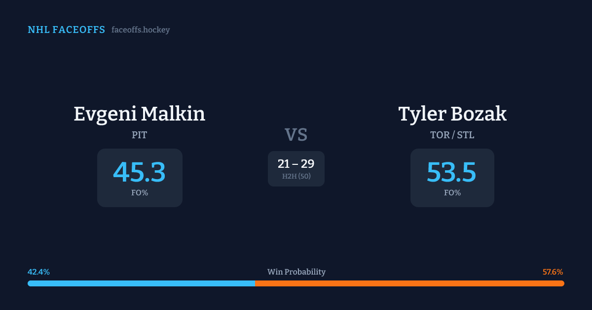 Evgeni Malkin vs Tyler Bozak — Faceoff Head-to-Head