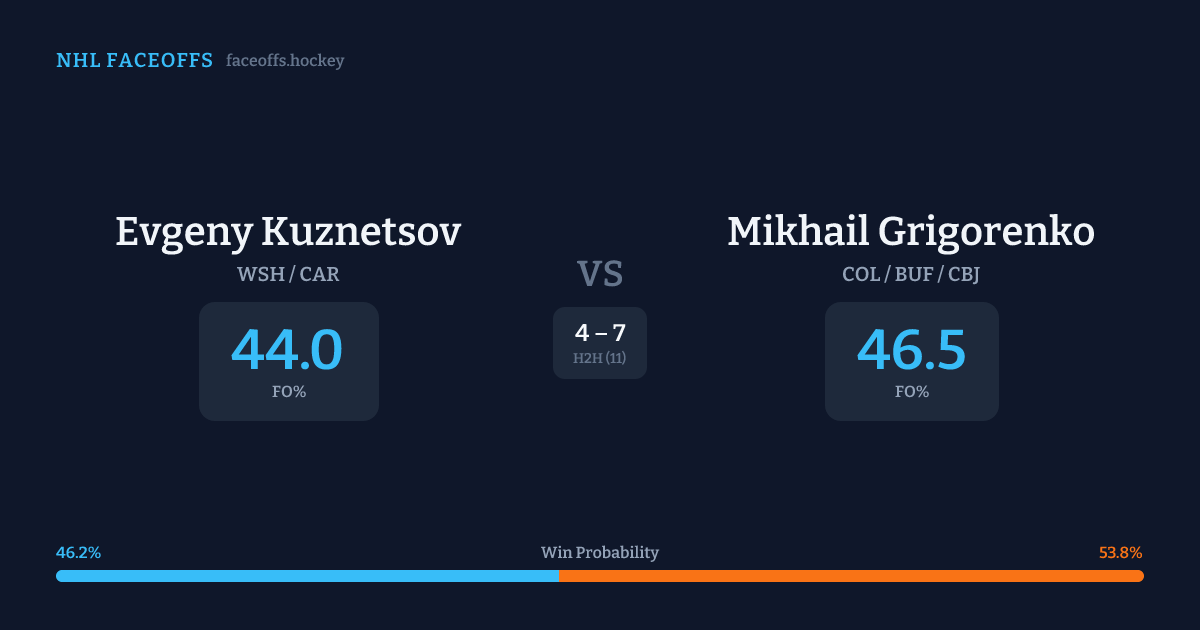 Evgeny Kuznetsov vs Mikhail Grigorenko — Faceoff Head-to-Head