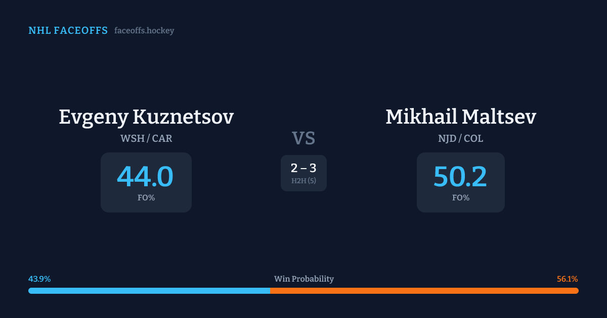 Evgeny Kuznetsov vs Mikhail Maltsev — Faceoff Head-to-Head