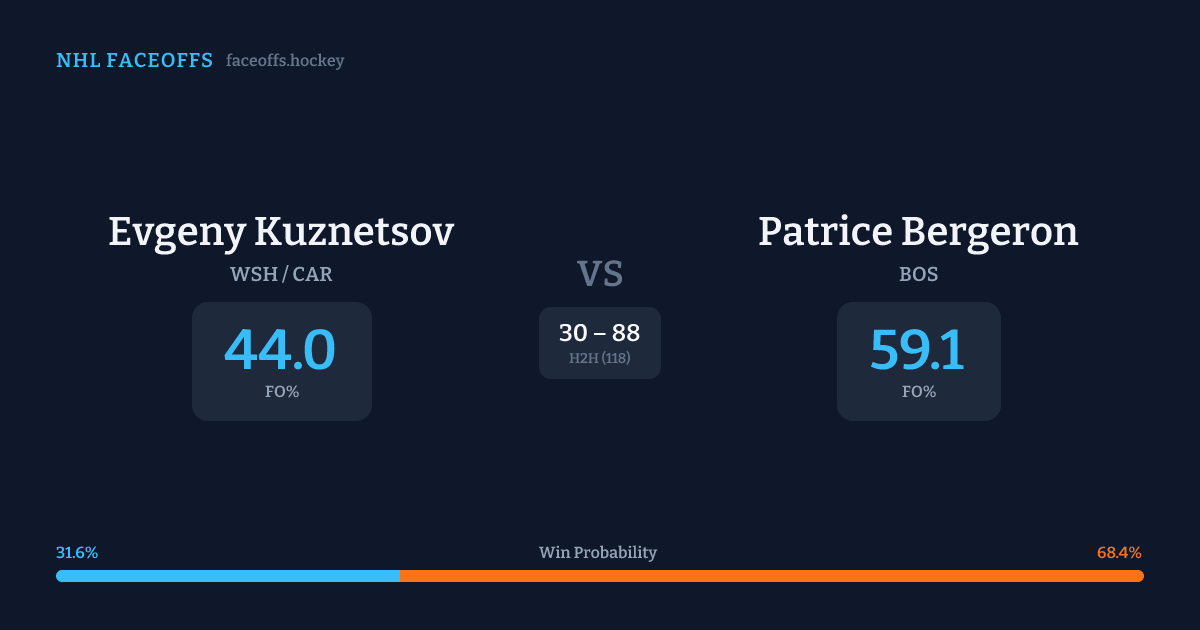 Evgeny Kuznetsov vs Patrice Bergeron — Faceoff Head-to-Head