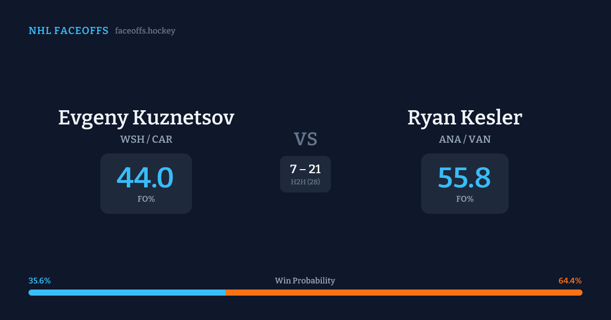Evgeny Kuznetsov vs Ryan Kesler — Faceoff Head-to-Head