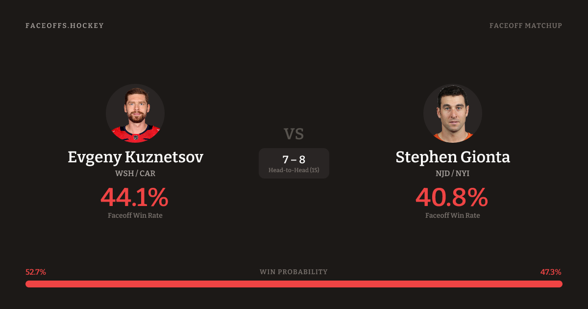 Evgeny Kuznetsov vs Stephen Gionta — Faceoff Head-to-Head
