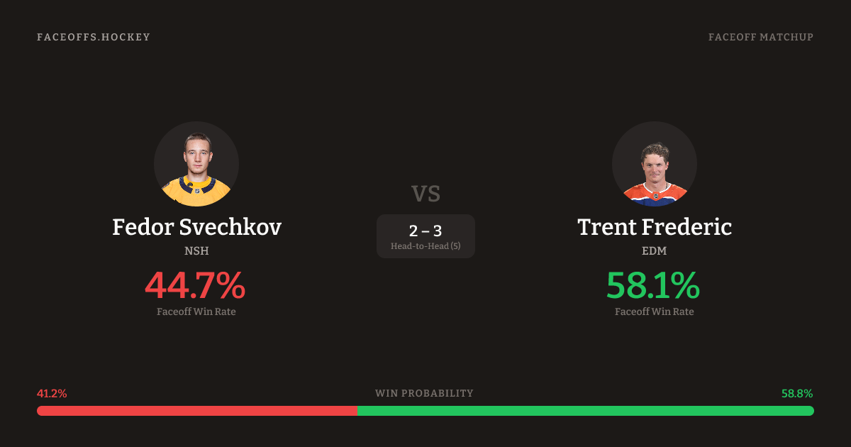Fedor Svechkov vs Trent Frederic — Faceoff Head-to-Head