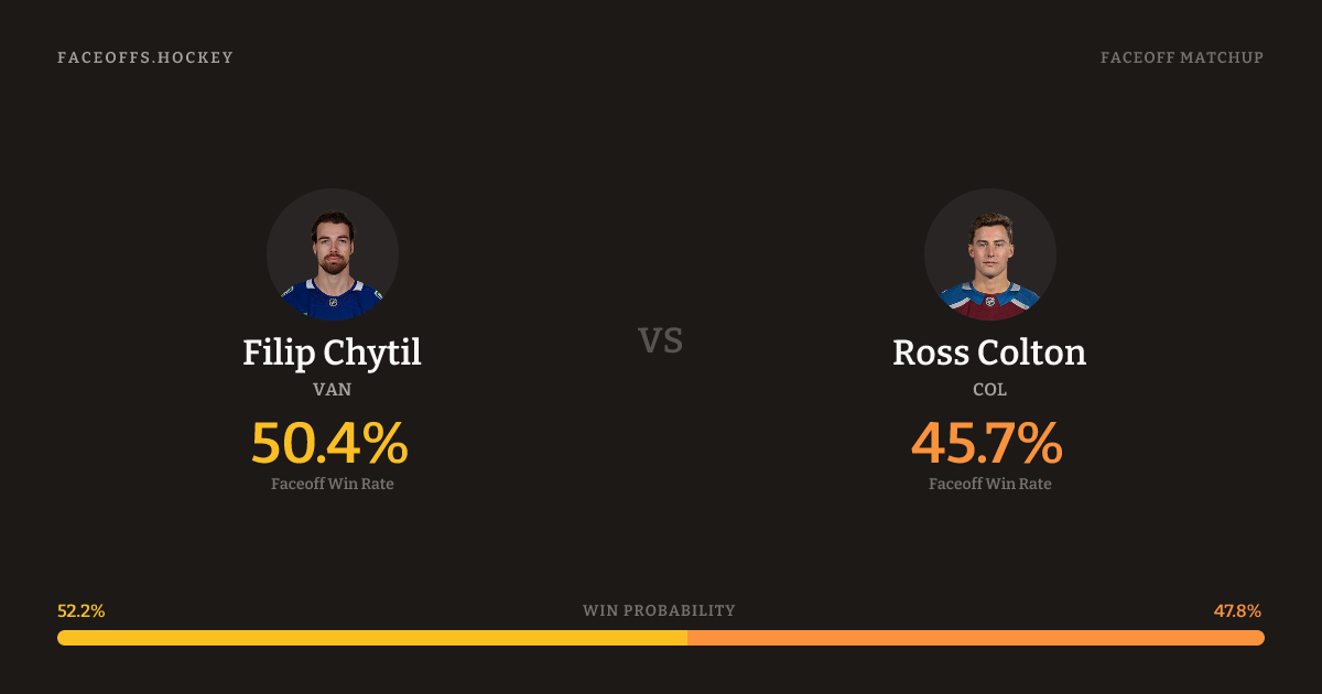 Colton shoots left. Chytil is 47.1% vs left-shot opponents (191).