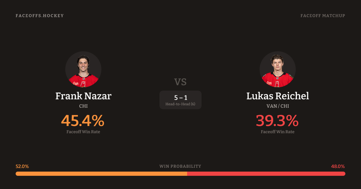 Frank Nazar vs Lukas Reichel — Faceoff Head-to-Head