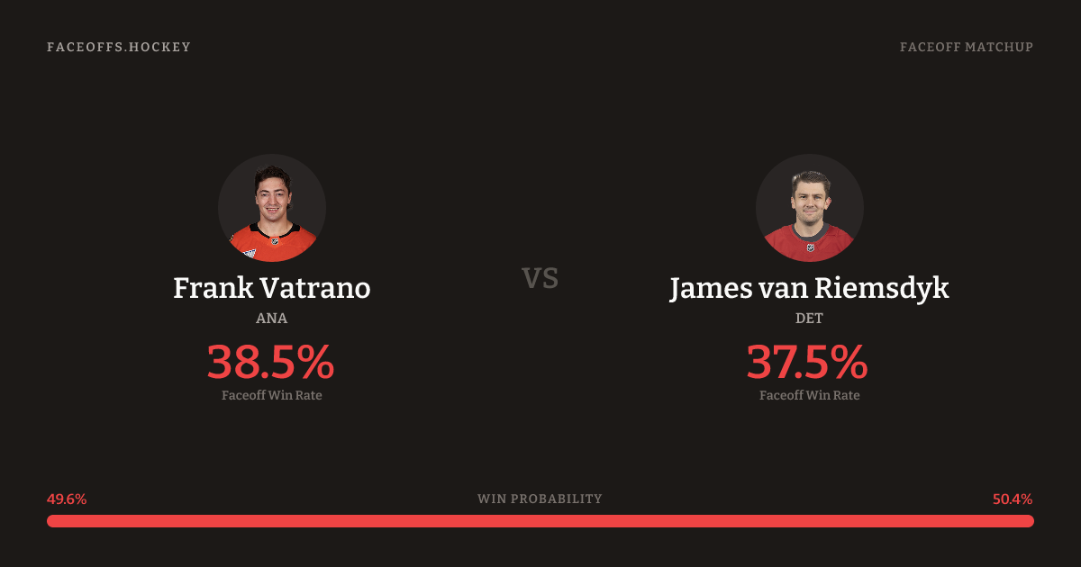 Frank Vatrano vs James van Riemsdyk — Faceoff Head-to-Head
