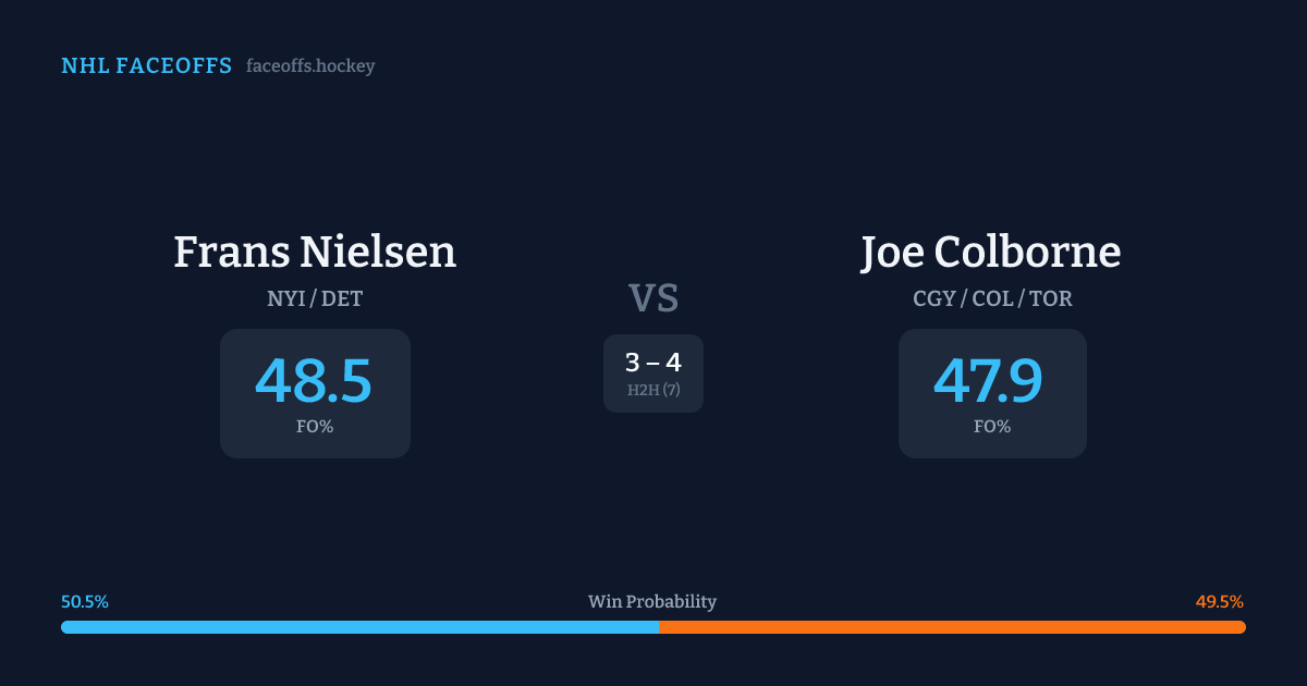 Frans Nielsen vs Joe Colborne — Faceoff Head-to-Head