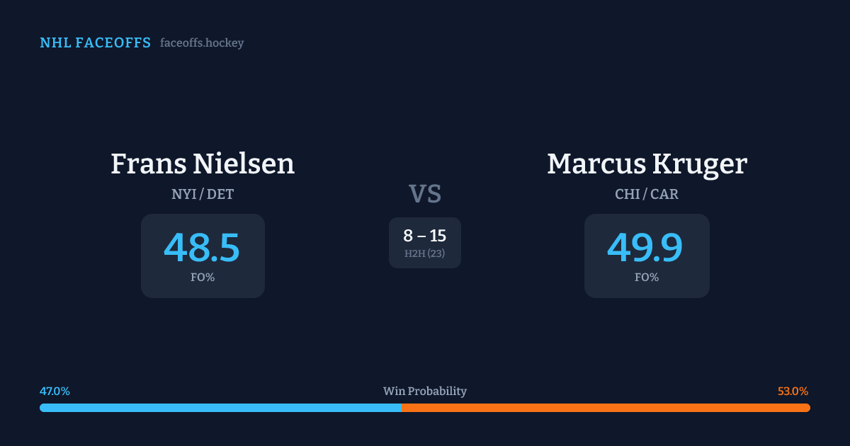 Frans Nielsen vs Marcus Kruger — Faceoff Head-to-Head
