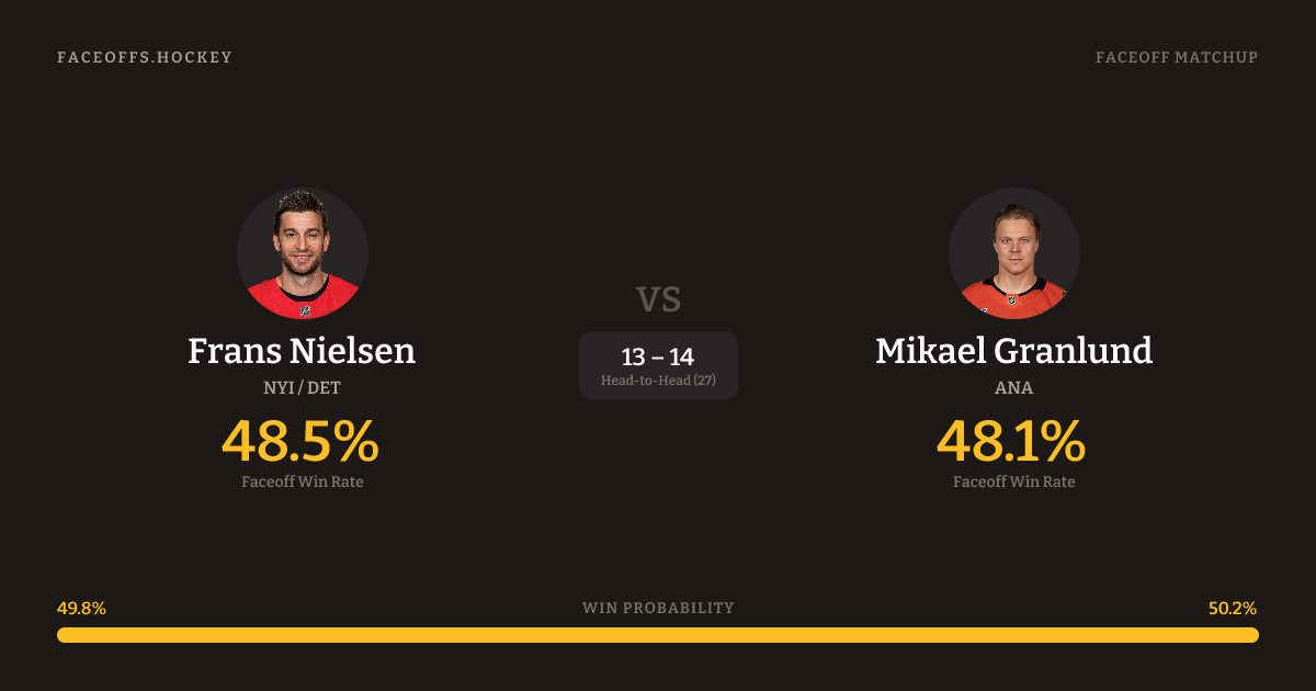 Frans Nielsen vs Mikael Granlund — Faceoff Head-to-Head