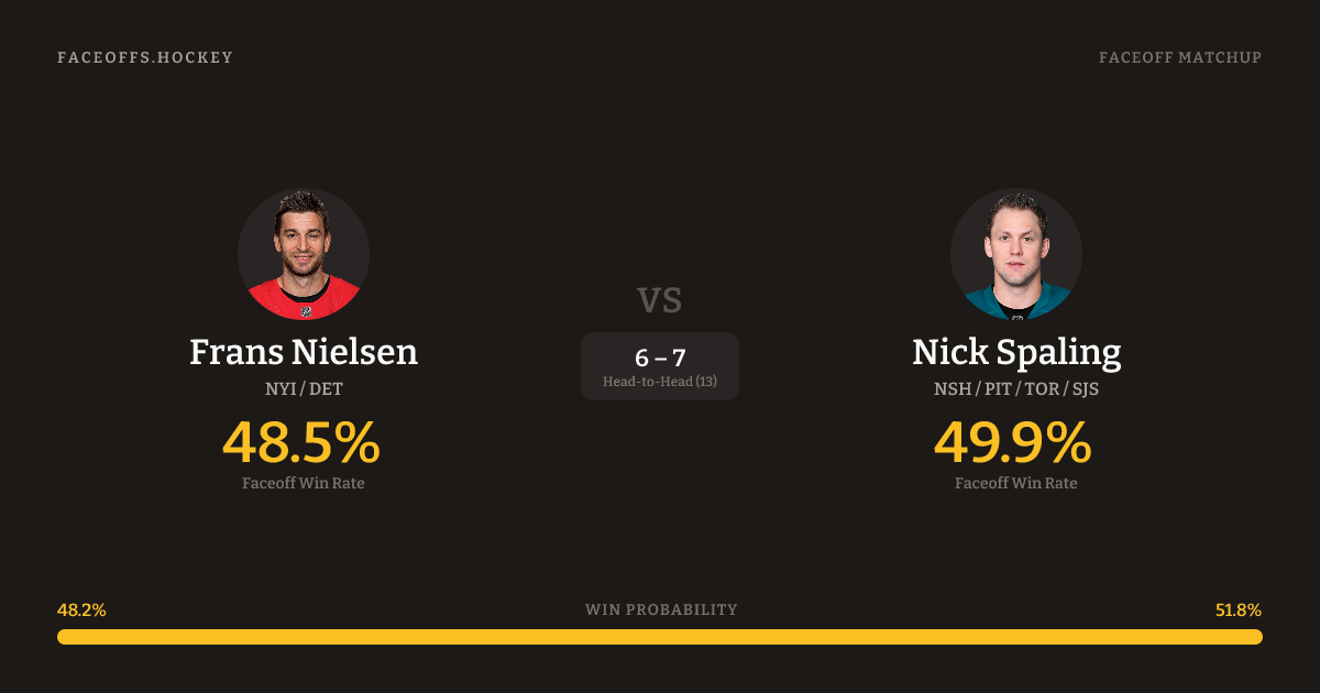 Frans Nielsen vs Nick Spaling — Faceoff Head-to-Head
