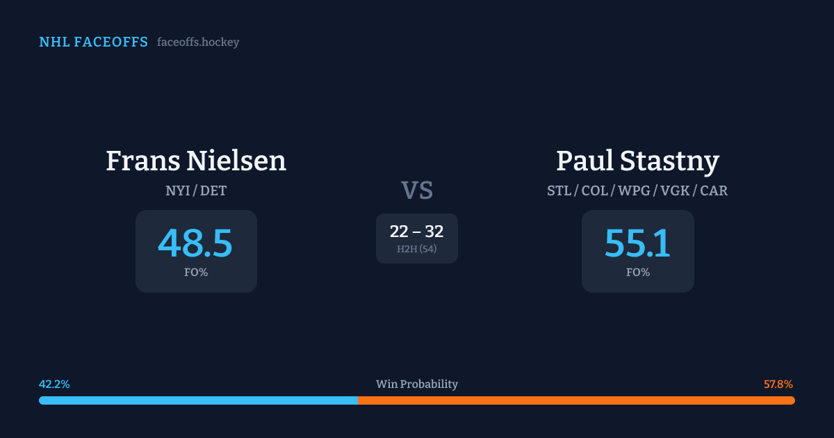 Frans Nielsen vs Paul Stastny — Faceoff Head-to-Head