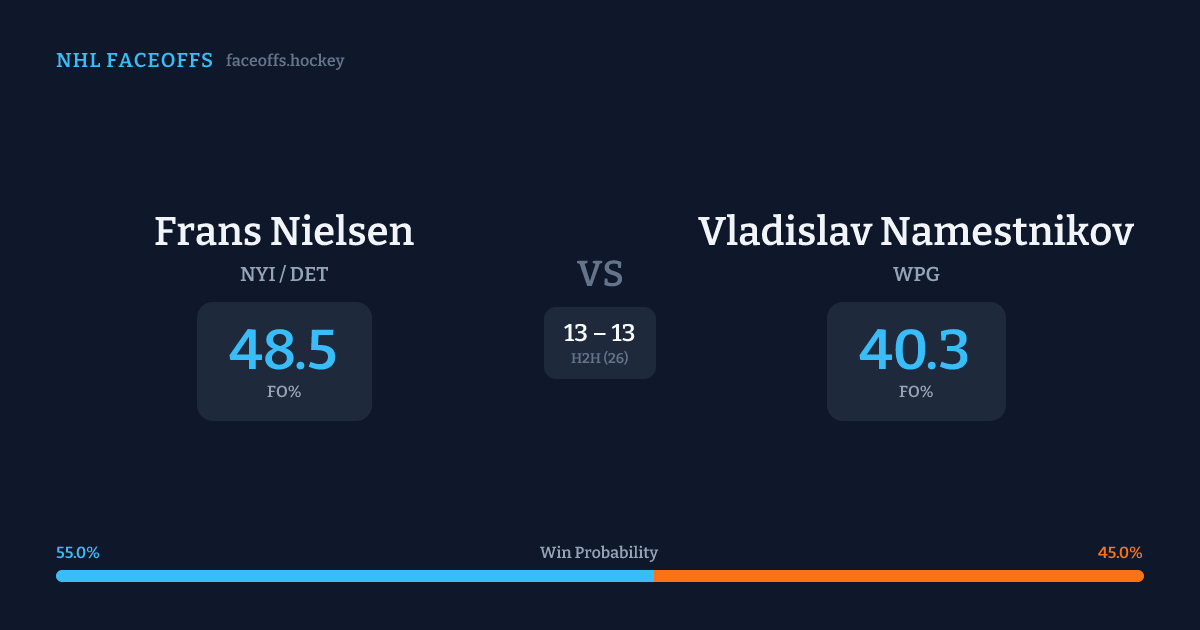 Frans Nielsen vs Vladislav Namestnikov — Faceoff Head-to-Head