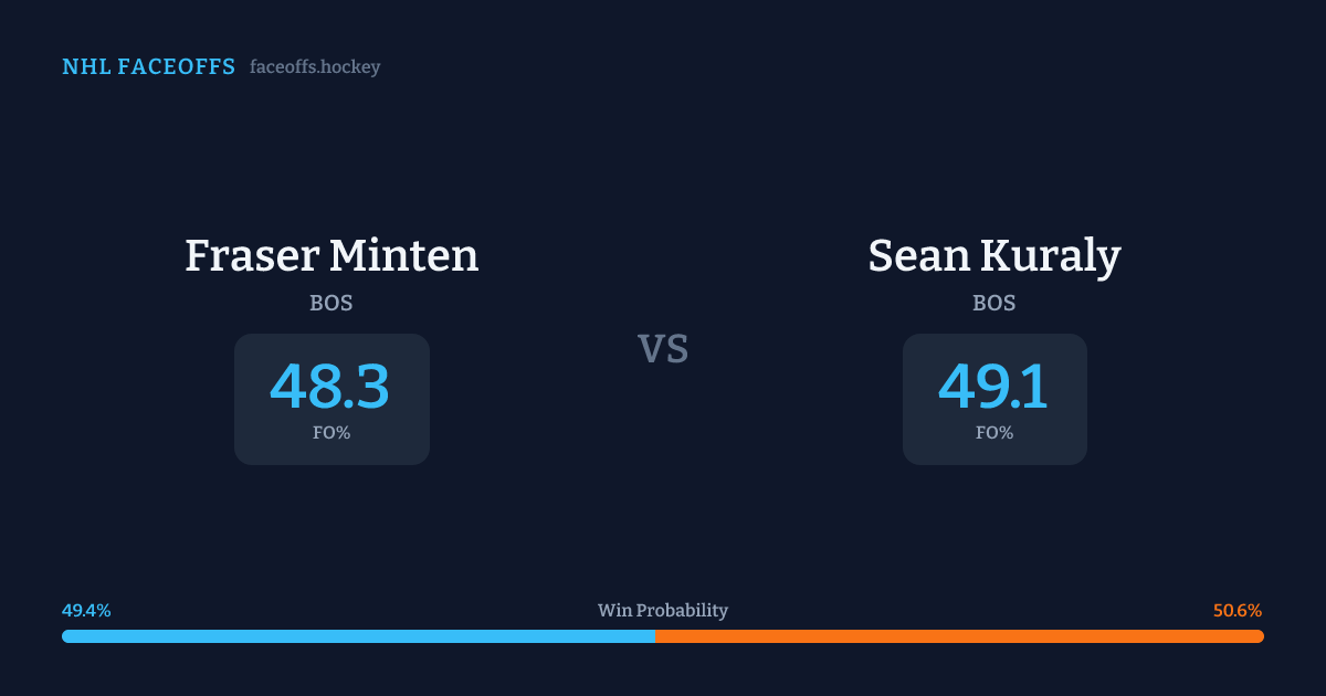 Fraser Minten vs Sean Kuraly — Faceoff Head-to-Head