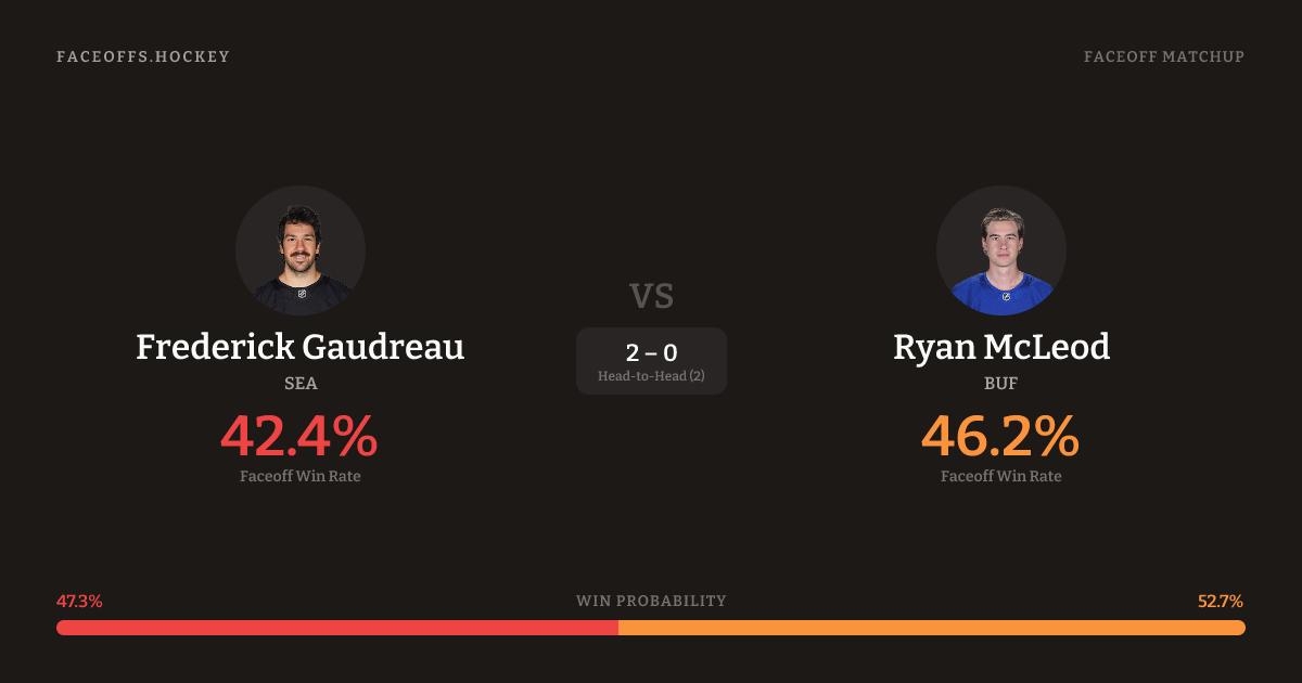 Frederick Gaudreau vs Ryan McLeod — Faceoff Head-to-Head