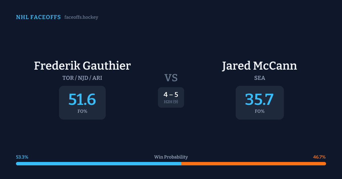 Frederik Gauthier vs Jared McCann — Faceoff Head-to-Head
