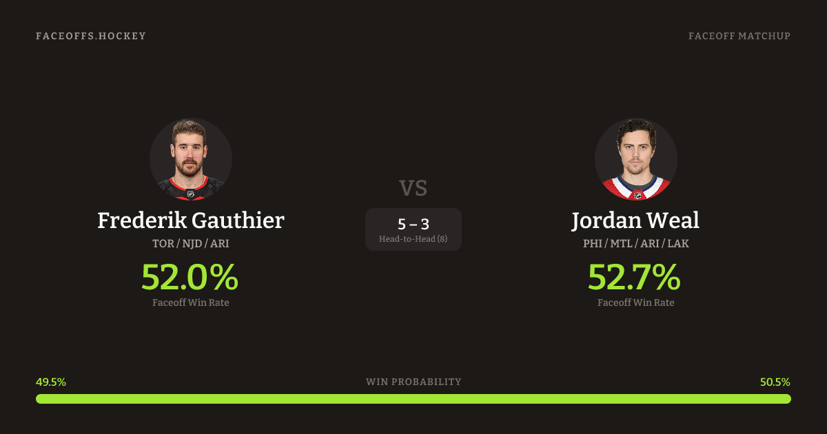 Frederik Gauthier vs Jordan Weal — Faceoff Head-to-Head