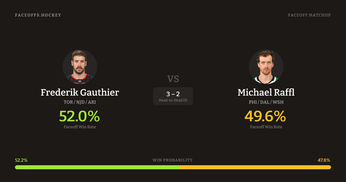 Frederik Gauthier vs Michael Raffl — Faceoff Head-to-Head