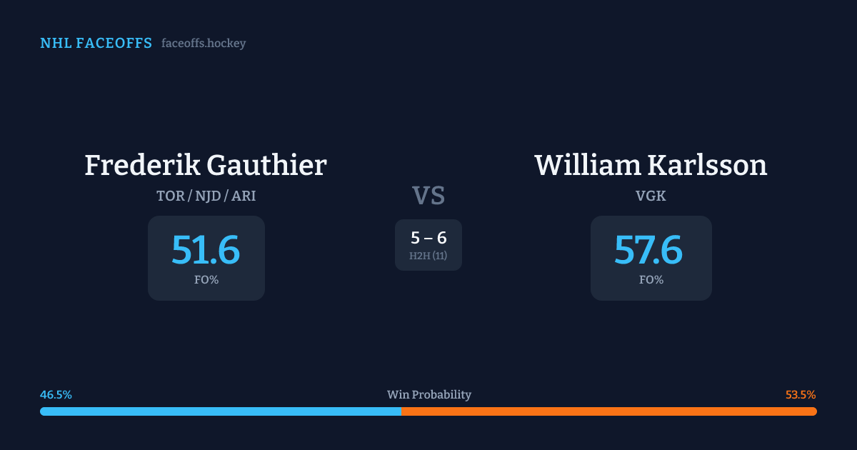 Frederik Gauthier vs William Karlsson — Faceoff Head-to-Head
