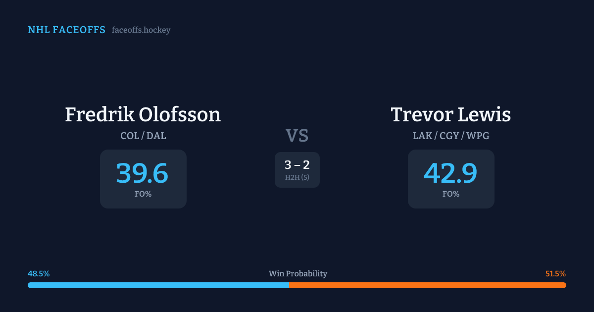 Fredrik Olofsson vs Trevor Lewis — Faceoff Head-to-Head