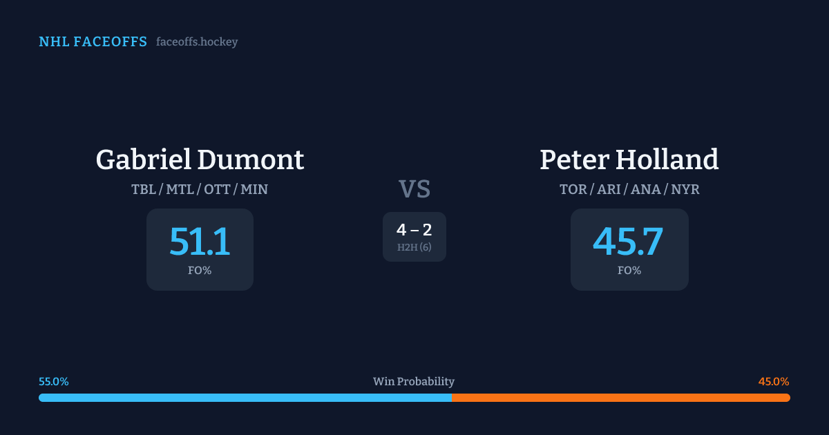 Gabriel Dumont vs Peter Holland — Faceoff Head-to-Head