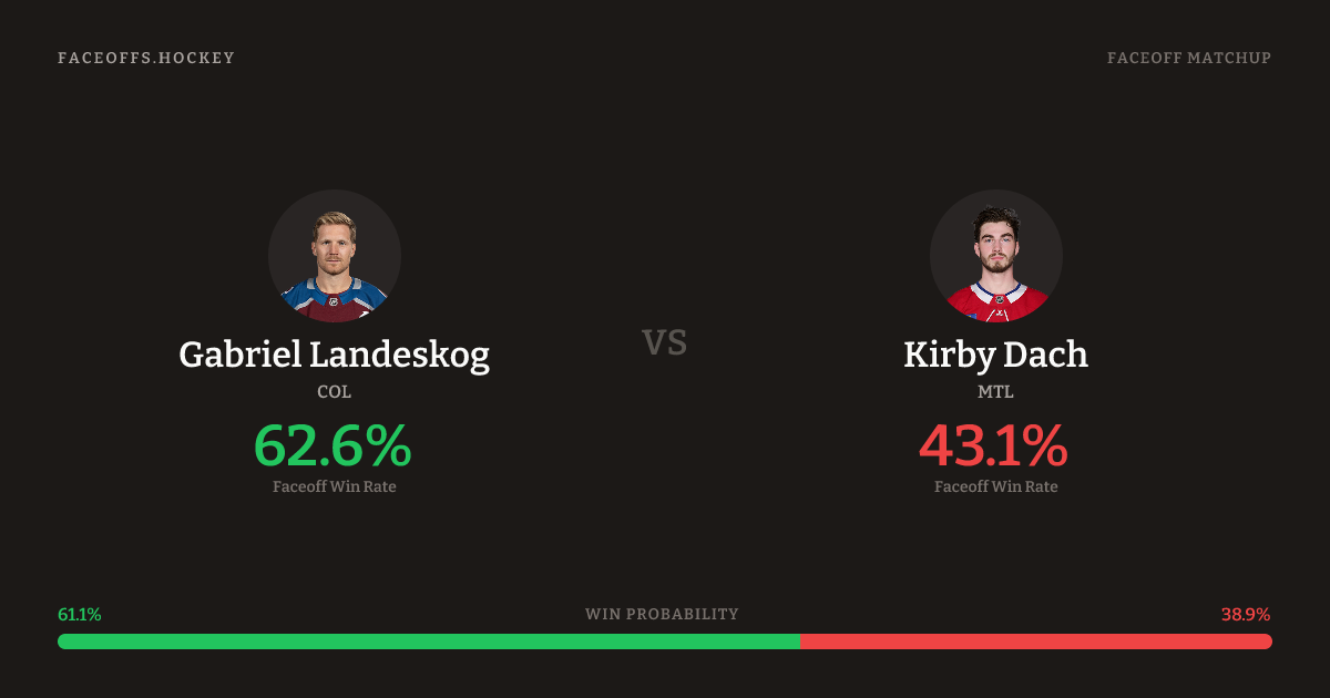 Gabriel Landeskog vs Kirby Dach — Faceoff Head-to-Head
