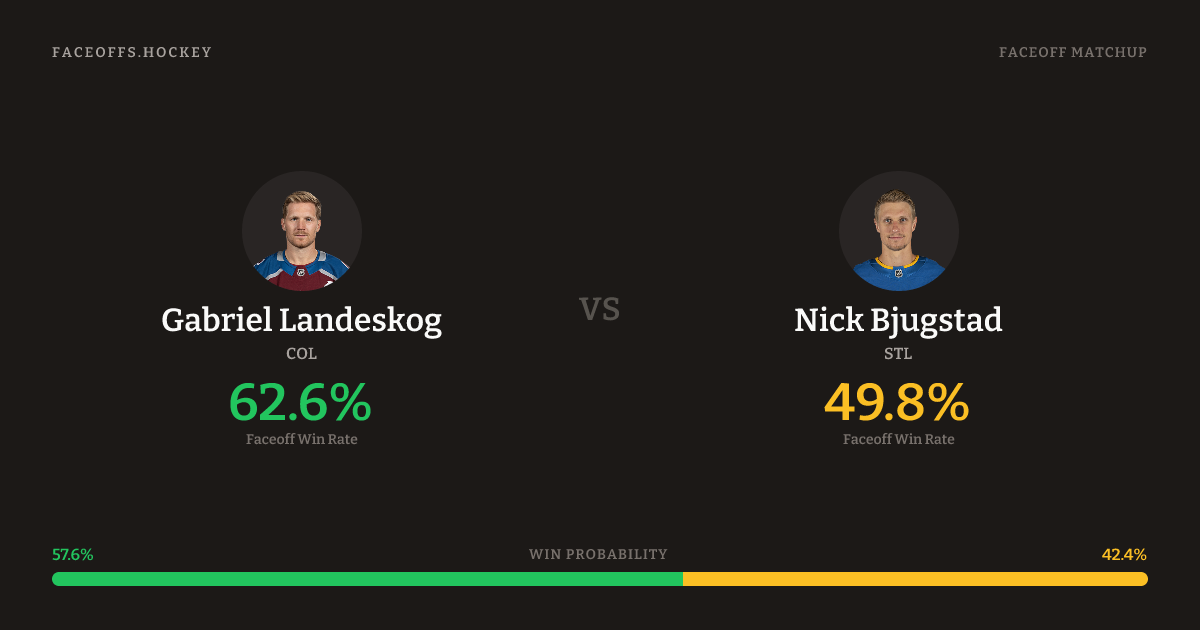 Gabriel Landeskog vs Nick Bjugstad — Faceoff Head-to-Head