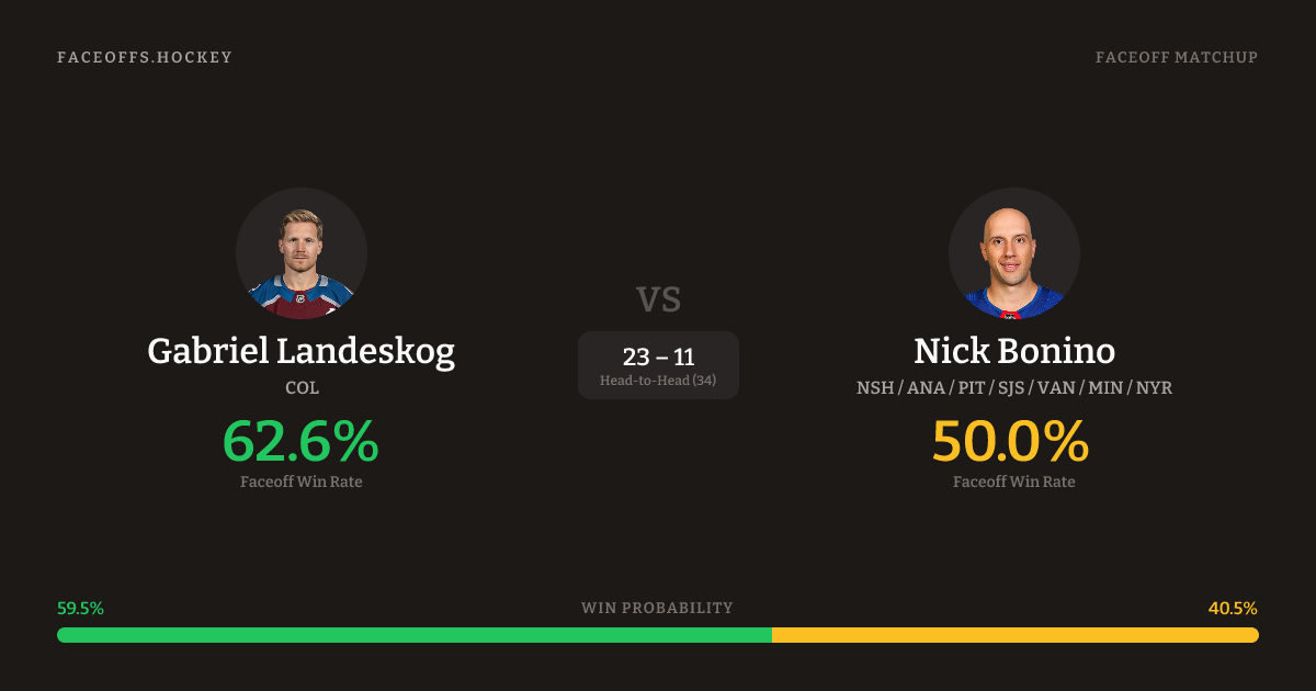 Gabriel Landeskog vs Nick Bonino — Faceoff Head-to-Head