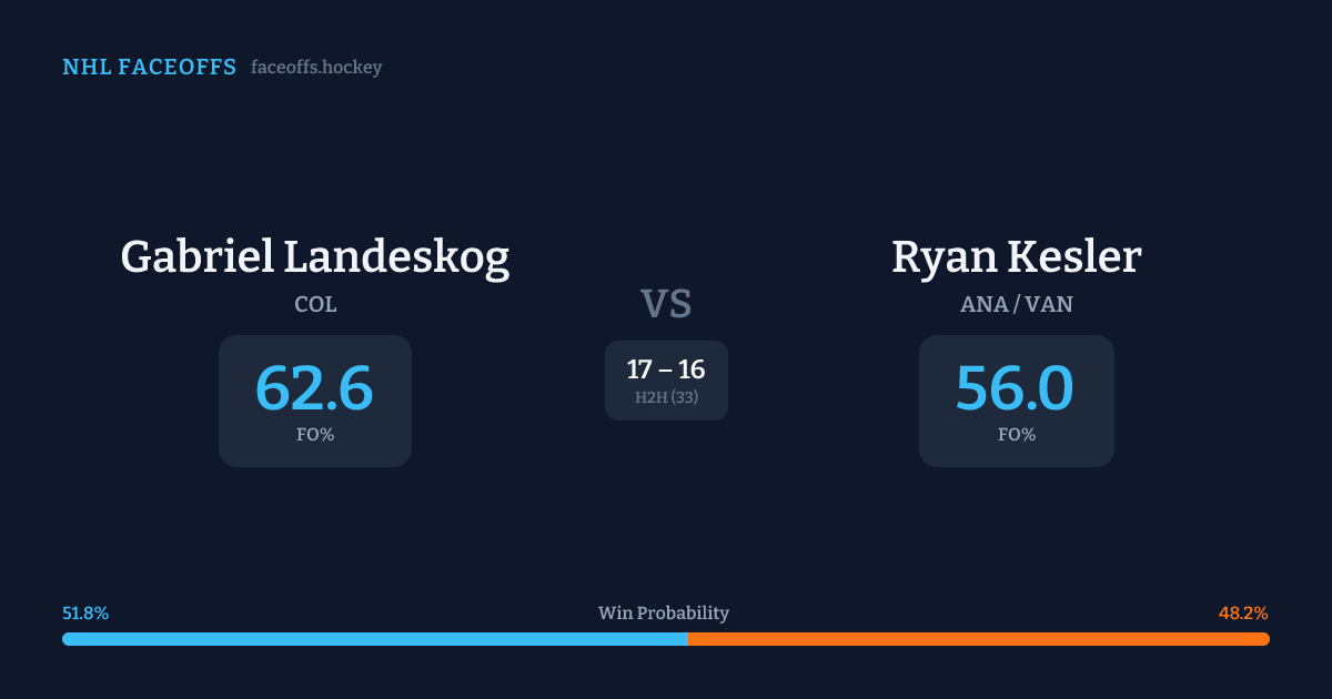Gabriel Landeskog vs Ryan Kesler — Faceoff Head-to-Head