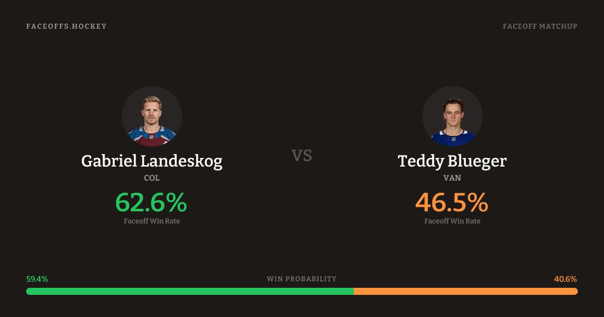 Gabriel Landeskog vs Teddy Blueger — Faceoff Head-to-Head