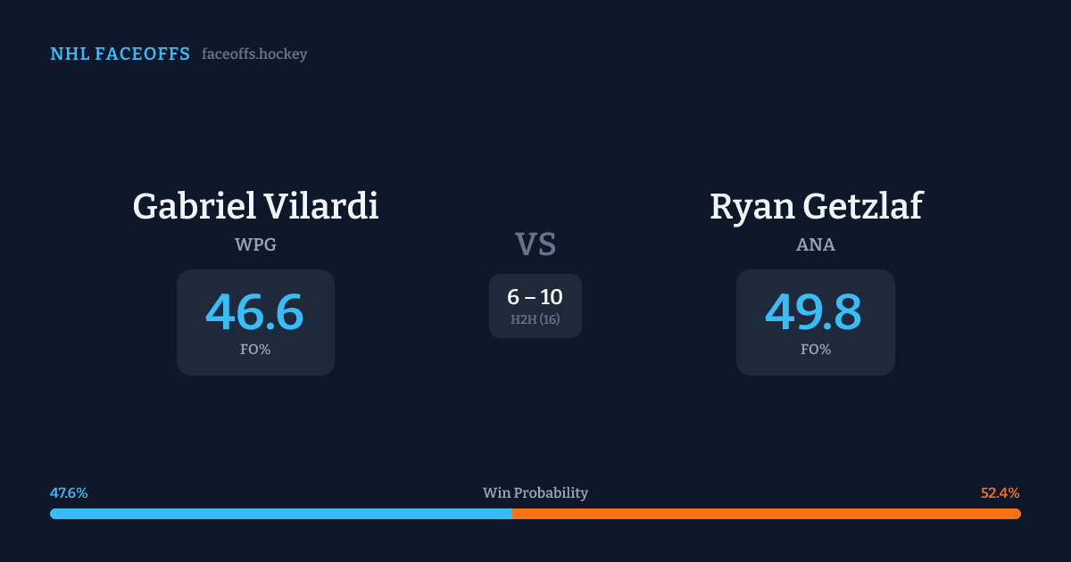 Gabriel Vilardi vs Ryan Getzlaf — Faceoff Head-to-Head