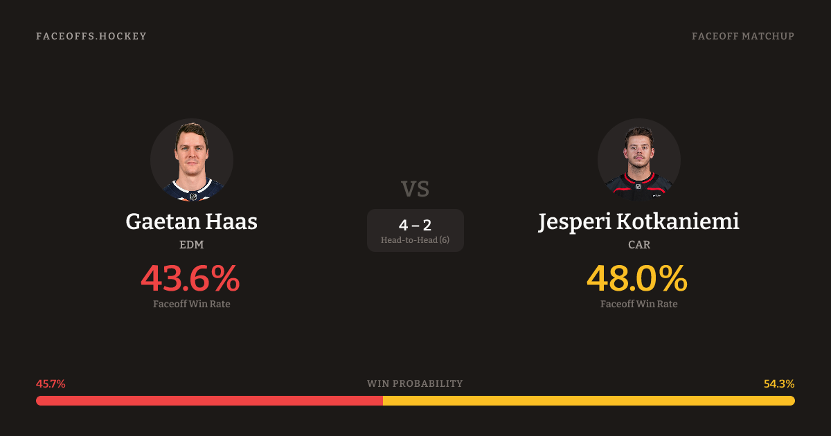 Gaetan Haas vs Jesperi Kotkaniemi — Faceoff Head-to-Head