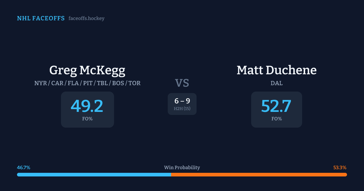 Greg McKegg vs Matt Duchene — Faceoff Head-to-Head
