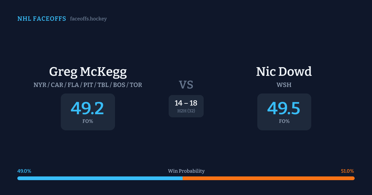Greg McKegg vs Nic Dowd — Faceoff Head-to-Head
