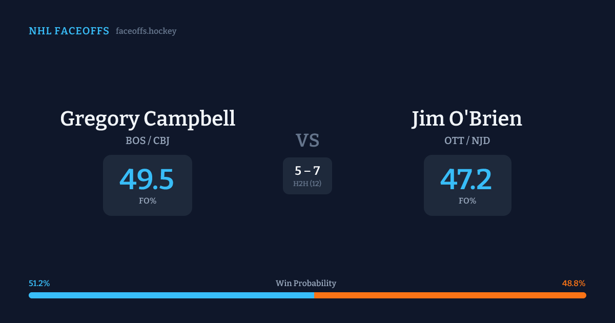 Gregory Campbell vs Jim O'Brien — Faceoff Head-to-Head